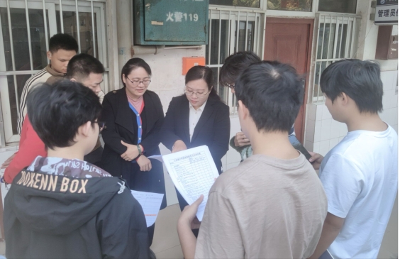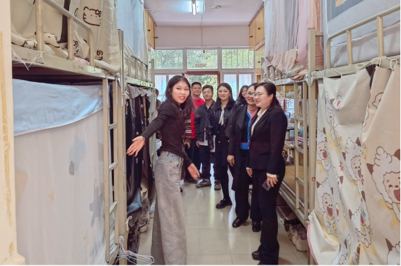 走访过程中,唐若茹深入学生宿舍,仔细察看学生的居住环境,与学生亲切交谈,详细询问他们的学习进展和生活情况,并就宿舍安全、校园服务等问题听取了学生的意见建议,对学生关切的问题逐一进行了回应,提醒同学们要注意宿舍用电安全、消防安全。她希望同学们要养成良好的学习、生活习惯,积极营造整洁高雅、健康文明、安全有序的宿舍环境。她嘱咐同学们在学习或生活方面遇到困难时及时向学院反映,以便学院为大家提供更加优越的学习生活条件,争取更多优质的教育资源。