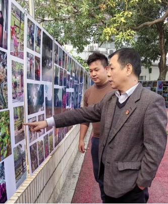 学校党委委员、纪委书记乐其顺驻足观看学生作品
