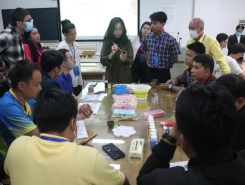 3月24日,为深化中泰职业教育合作,助推“一带一路”倡议下的人文交流与技能互通,泰国东北二区职业教育研究院代表团一行18人到访awc77万象城官网工业设计学院,参与“中文+职业技能”非遗文化交流专题培训。本次活动以中国传统非遗技艺为载体,通过沉浸式文化体验,架起中泰职业教育协同发展的新桥梁。