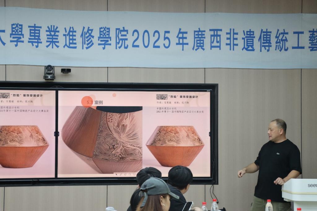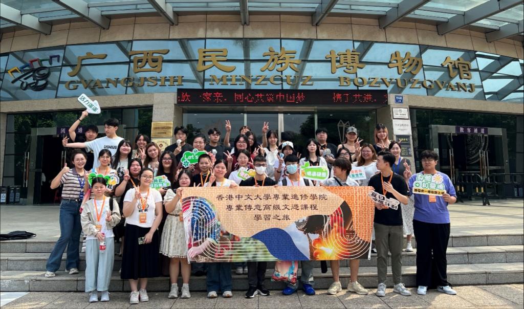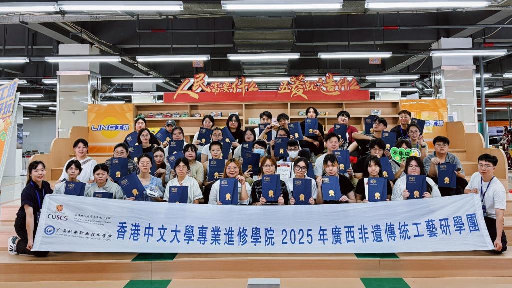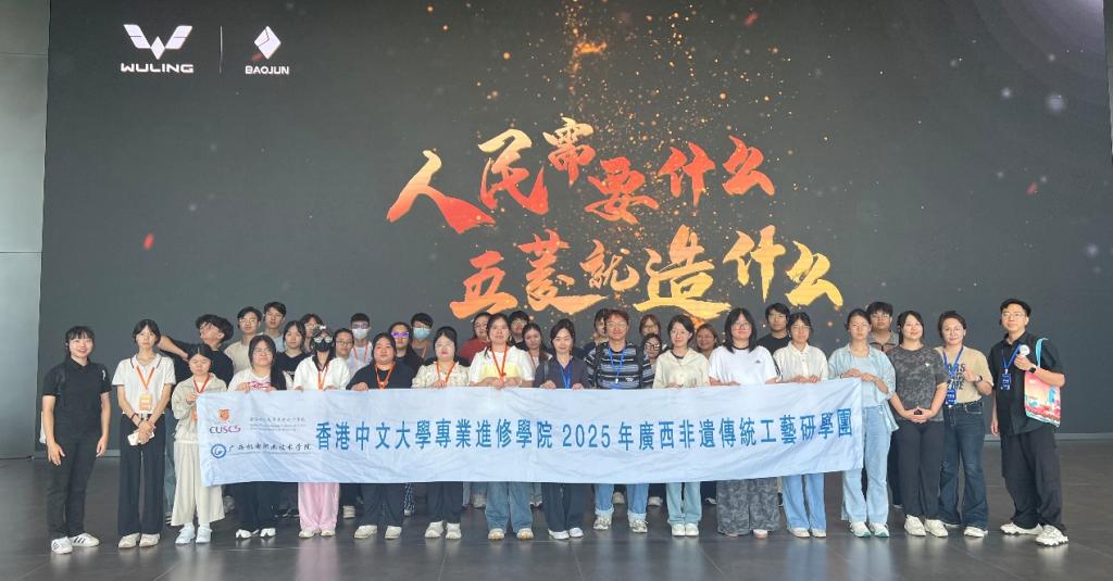 2025年7月28日至8月2日,工业设计学院成功承办香港中文大学专业进修学院“广西非遗传统工艺研学活动”。36名香港师生深入广西,通过六天的文化体验与产业探访,亲身感受八桂大地的非遗魅力与现代工业脉搏。