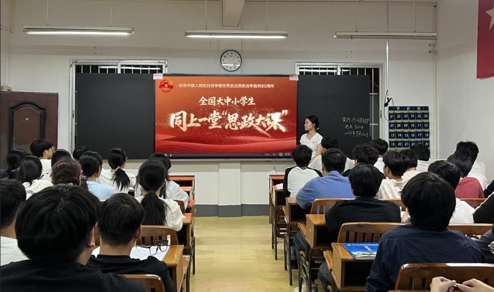 为深入学习习近平总书记在纪念中国人民抗日战争暨世界反法西斯战争胜利80周年大会上的重要讲话精神,引导青年学生厚植家国情怀,近日,工业设计学院组织团学骨干成员和30个在校团支部班级集中观看由教育部、中央网信办、人民日报社、国家文物局主办的“弘扬伟大抗战精神,做光荣自豪中国人”全国大中小学生同上一堂思政大课——大学篇“大国担当”课程。
