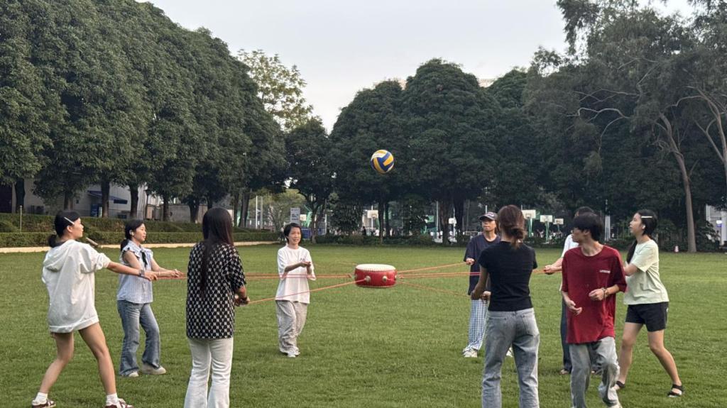 这些趣味项目将“一站式”社区的服务温度与育人活力深度融合,同学们以宿舍为单位组队,在运动中卸下压力,把宿舍情谊从楼道延伸到赛场。尤其是“同心鼓垫排球”项目,八人拉绳控鼓的设计,完美诠释了“一站式”社区里多元主体协同发力的育人理念,让同学们在协作中读懂“拧成一股绳”的集体智慧。