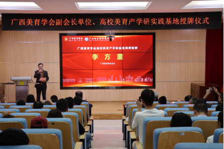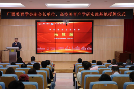 金秋八桂硕果盈,美育同心启新程。11月11日,广西美育学会副会长单位、高校美育产学研实践基地揭牌仪式在万象城官网第二学术报告厅隆重举行。来自中国科学院大学、广西民族大学、广西艺术学院等区内外知名专家学者、广西美育学会领导及专家顾问代表与学校领导、教师代表齐聚一堂,共同见证广西高校美育产学研基地落地,携手开启美育协同发展崭新篇章。万象城官网党委委员、纪委书记乐其顺博士出席会议。