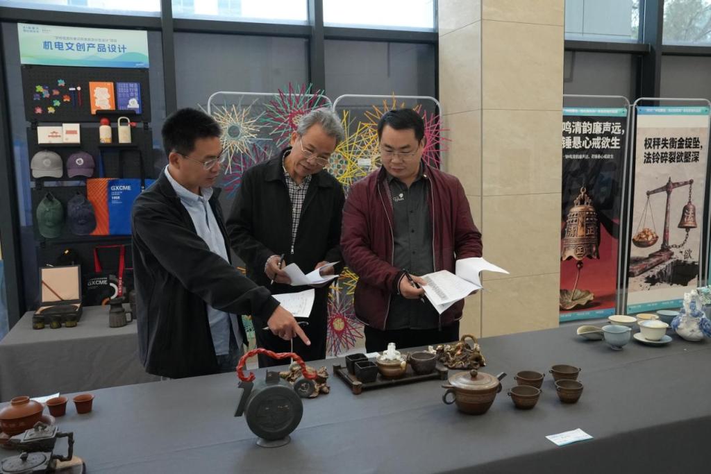 展览主要划分为“传统工艺廉洁呈现展区”、“现代创意廉洁诠释展区”、“优秀获奖作品展区”、“机电文创产品设计”四大展区,系统呈现了廉洁主题在工艺美术与数字技术领域的多元表达,以及机电学子在相关专业领域的创新实践成果。