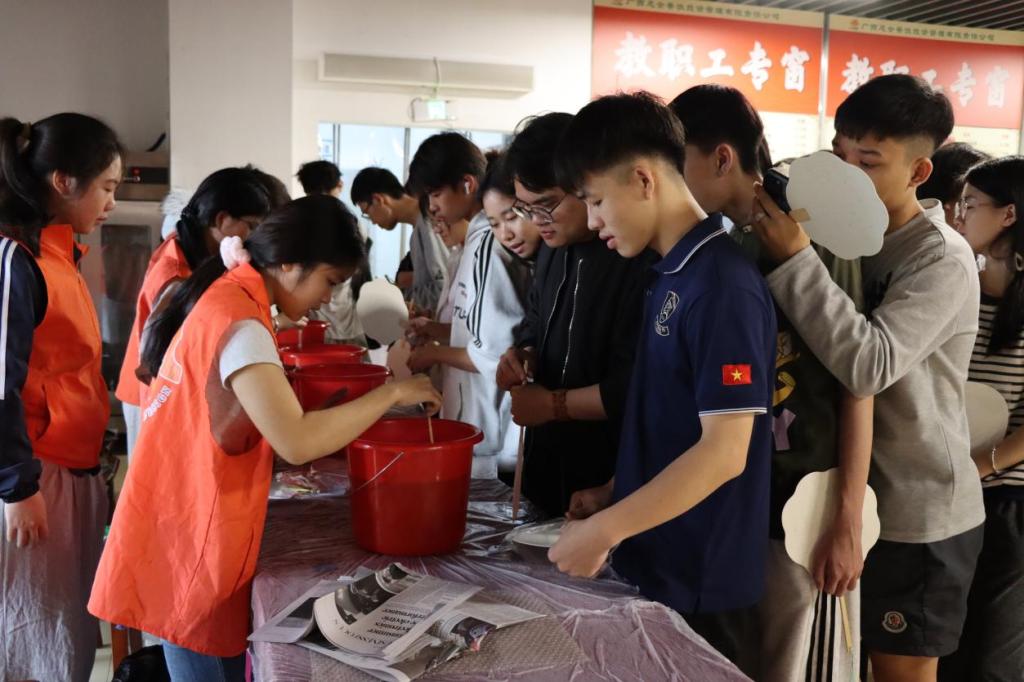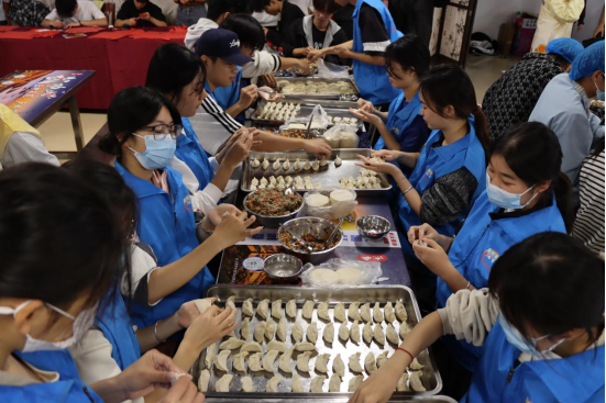 作为中华民族承载“团圆和睦”“感恩守礼”精神的重要节日,冬至成为本次文化育人的鲜活载体。活动现场,非遗体验区里中外学子手把手学剪纸、共绘漆扇“福”字,红纸翻飞间、笔墨流转中,中华优秀传统文化化作跨越语言的交流纽带,筑牢青年学子文化根脉;饺子制作区暖意融融,中国学子娴熟示范,外国学子效仿实践,“捏褶漏馅”的小插曲化作欢声笑语,在协作互助中彰显青春力量,让民俗实践成为劳动教育与包容品格培育的生动课堂。爱心传递环节更添温情,学子们化身“暖冬使者”,将热腾腾的饺子送往宿舍阿姨、门卫值班人员手中。从宿舍区到校园岗亭,一句句道谢、一张张笑脸,让感恩之心与社会责任感在冬日里悄然生长。活动尾声,中外学子手持亲手制作的非遗作品合影留念,团圆联欢的温馨画面,定格成校园多元文化交融的生动缩影。