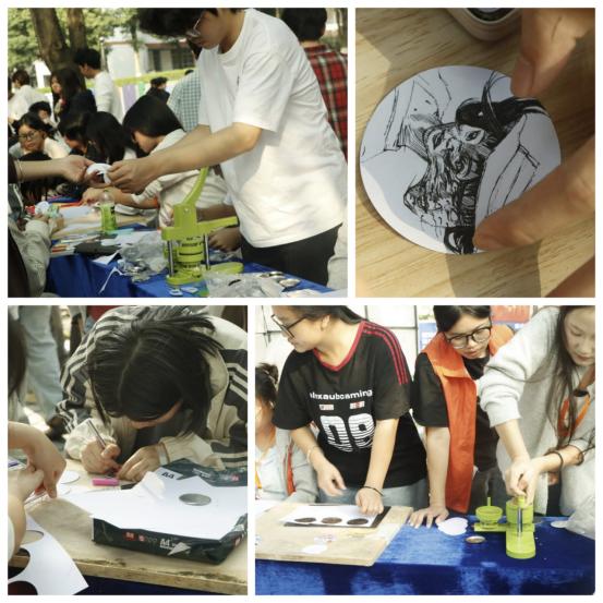 作为学院深耕校园文化、服务学子成长的重要载体,本次活动紧扣“让周末更有温度、让校园更具活力”的初心,将工业设计学科特色转化为可参与、可感知的实践场景印章书签区里,校园建筑轮廓随笔墨凝注方寸,篆印线条的肌理美学与校园意蕴实现自然交融;扭扭棒创作区中,学子们在志愿者指导下巧思拼接,将创意转化为具象作品,动手能力与协作意识同步提升;吧唧徽章区前,动漫形象、手绘纹样通过压制成型,成为学子定格机电记忆、表达校园情怀的独特载体。三类场景层层递进,让设计思维、美育素养在指尖流转,更让线下联结在共创共享中不断深化。