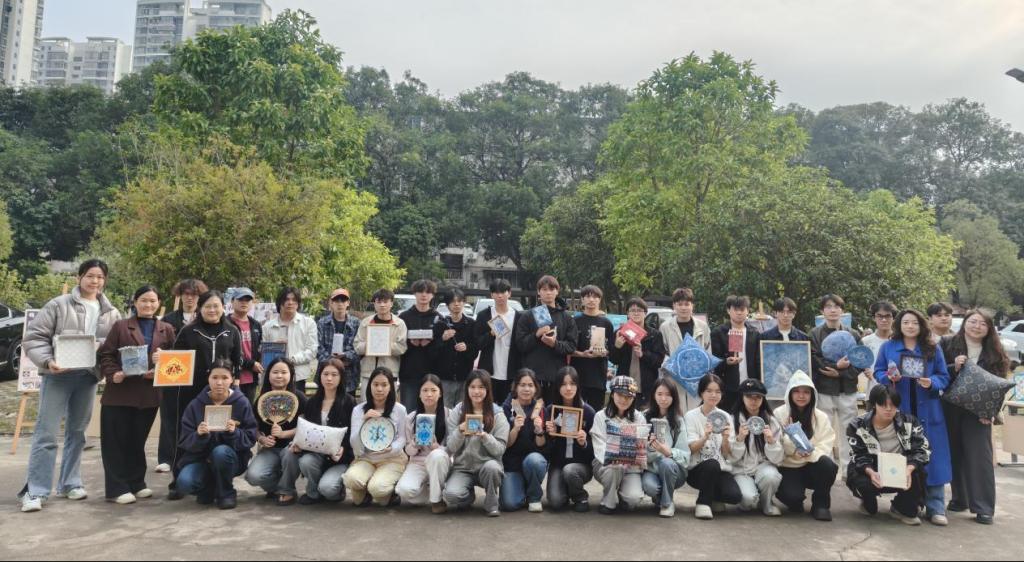 12月9日,工业设计学院《家居工艺品设计》课程作业展在学院门前展区正式开展。本次展览由室内设计2402班学生主创,以“传统民族元素+现代设计语言”为创作核心,将广西壮锦、苗族扎染、拼布等非遗技艺融入家居设计,通过系列创意作品呈现传统非遗与现代生活的创意碰撞,集中展现学院“文化育人、实践赋能”的课程教学成果。