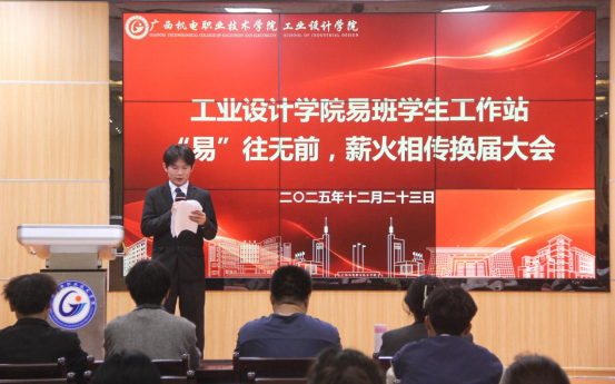 随后,大会正式公布工业设计学院易班学生工作站第二届委员名单。在全场见证下,新老委员举行握手交接仪式,温馨瞬间象征着易班精神的薪火相传与责任交接。