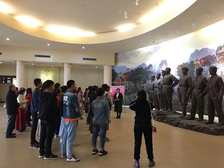 随后全体与会党员和学生代表一起参观了广西革命纪念馆,重温革命历史。在讲解员的带领下透过一幅幅珍贵的历史照片和大量详实的文字资料,仿佛看到自辛亥革命以来,广西人民波澜壮阔的革命历史长卷。师生们认真参观了由新民主主义革命时期、社会主义时期两个部分组成的主展厅,回顾了广西大革命时期、土地革命时期、抗日战争时期、解放战争时期、社会主义时期、国家领导人与广西的组群历史。参观结束后,大家纷纷表示通过参观和学习,进一步加深了对广西革命历史的认识。