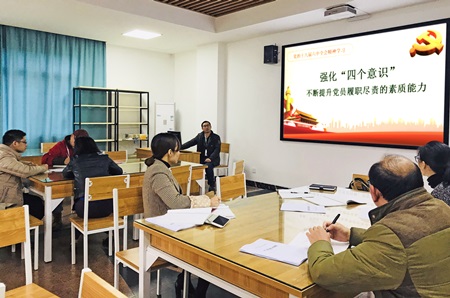 1月16日,我系教职工党支部由支部书记蓝鑫同志主持开展了一堂以加强党员“四个意识、四个自信”建设为主的党课学习。党课围绕着深入贯彻党的十九大精神前提下,如何增强教师的政治意识、大局意识、核心意识、看齐意识以及中国特色社会主义道路自信、理论自信、制度自信、文化自信。随后各党小组分头开展了深化学习的讨论研究。