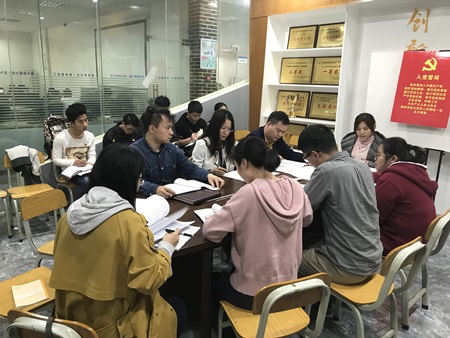 唐书记首先带领支部党员重温入党誓词,过后集中学习了十九大报告精神、习近平总书记给莫斯科大学中国留学生重要回信精神及中共awc77万象城官网委员会十二项党建工作制度,通过学习,唐书记要求支部全体党员要充分认识学习宣传贯彻党的十九大精神的重大意义;要结合工作实际,切实把总书记重要回信精神转化为推动工作的强大动力,体现到立德树人、教书育人的具体实践和青年学生成长发展的各个环节中;要深刻领会、准确把握学院党委十二项党建工作制度的思想精髓和核心要义,充分发挥党建带团建的引领作用。随后,支部组织委员陆莹着重说明了党费收缴和管理的执行办法。