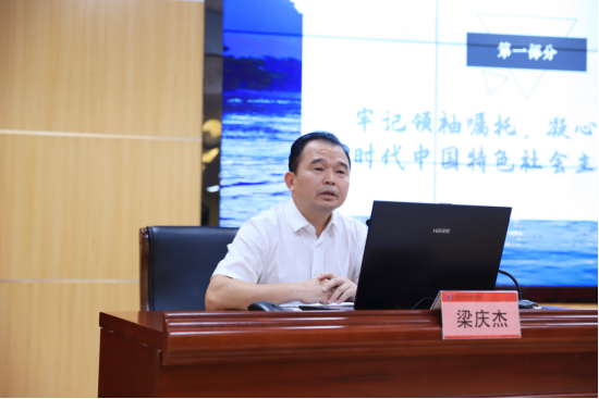 梁庆杰副校长从“牢记领袖嘱托,凝心聚力建设新时代中国特色社会主义壮美广西,党的十八大以来广西经济社会发展成就回顾,建设新时代中国特色社会主义壮美广西的战略举措”三个方面,深入讲解了习近平总书记在广西考察时的重要讲话精神。梁庆杰副校长还通过详实的数据、丰富的案例,详实介绍了“十三五”时期广西发展取得的历史性成就,“十四五”广西发展面临的挑战和机遇以及建设新时代中国特色社会主义壮美广西的战略举措。