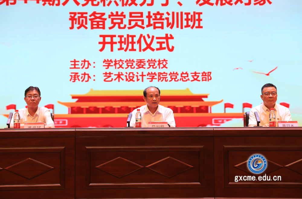 6月16日晚,万象城官网党委党校第44期入党积极分子、发展对象、预备党员培训班开班仪式在弘毅楼大礼堂举行。学校党委副书记、党校校长陈科鹤出席并讲话,开班仪式由艺术设计学院党总支部书记、院长刘永福主持。