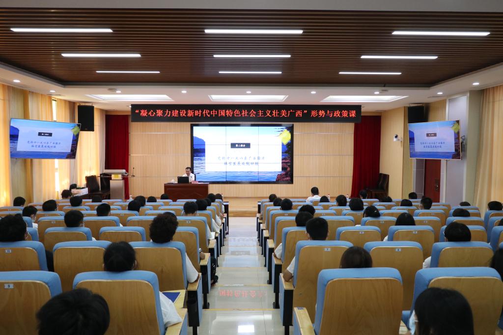 9月27日上午,学校副校长梁庆杰到我院讲授题为《凝心聚力建设新时代中国特色社会主义壮美广西》形势与政策党课,我院教师党员代表、学生发展对象、入党积极分子代表教育参加了党课。