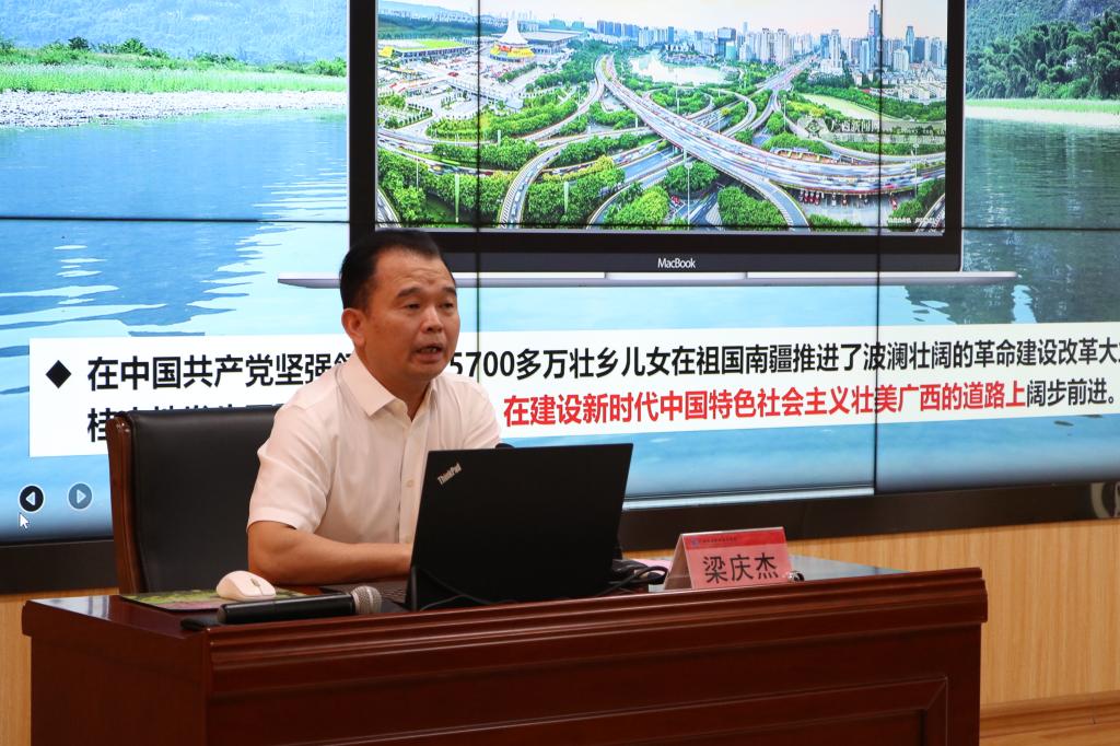 梁庆杰副校长强调,作为新时代大学生,更要牢记初心使命,满怀豪情壮志,不负时代,接续奋斗,以青春之我谱写全面建设社会主义现代化国家的广西篇章。