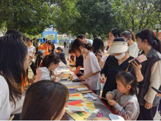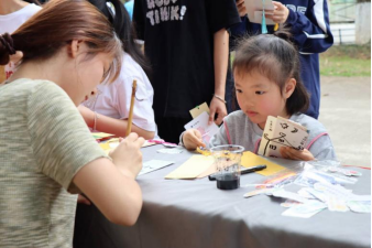 图4:在场的学生志愿者为小朋友书写定制书签
