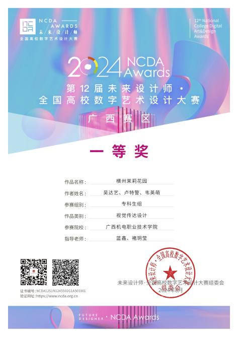 2. 指导学生参加2024年全国高校数字艺术设计大赛广西区赛区赛一等奖