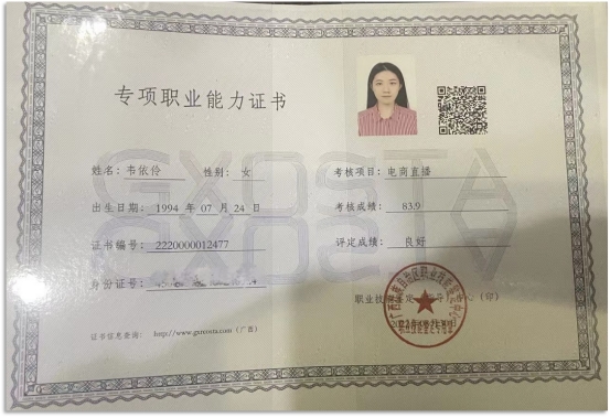 竞赛指导方面展现出优秀的教学指导能力,近五年,带领学生在多项赛事中屡获佳绩:2025 年指导学生荣获广西职业院校技能大赛短视频创作与运营赛项三等奖;在第 12 届全国大学生数字媒体科技作品及创意竞赛广西赛区,两次指导学生摘得三等奖;同时,在第八届中国 “互联网 +” 大学生创新创业大赛艺术设计学院选拔赛中,也指导学生获得三等奖。这些成绩不仅彰显了她扎实的专业功底与创新指导能力,更为学生的成长成才提供了有力支持,为学校的专业建设与人才培养添砖加瓦。毕业于英国普利茅斯大学品牌与设计管理专业,研究生学历,硕士学位。2022年获得广西职业技能鉴定中心认证的电商直播职业专项技能证书