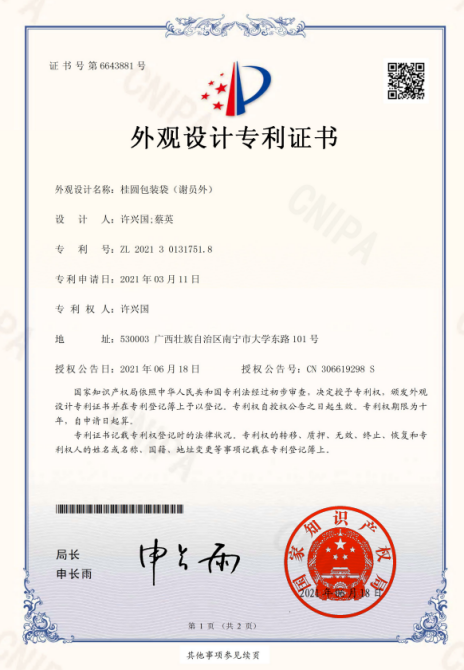 13. 外观专利,桂圆包装袋(谢员外),2021.3