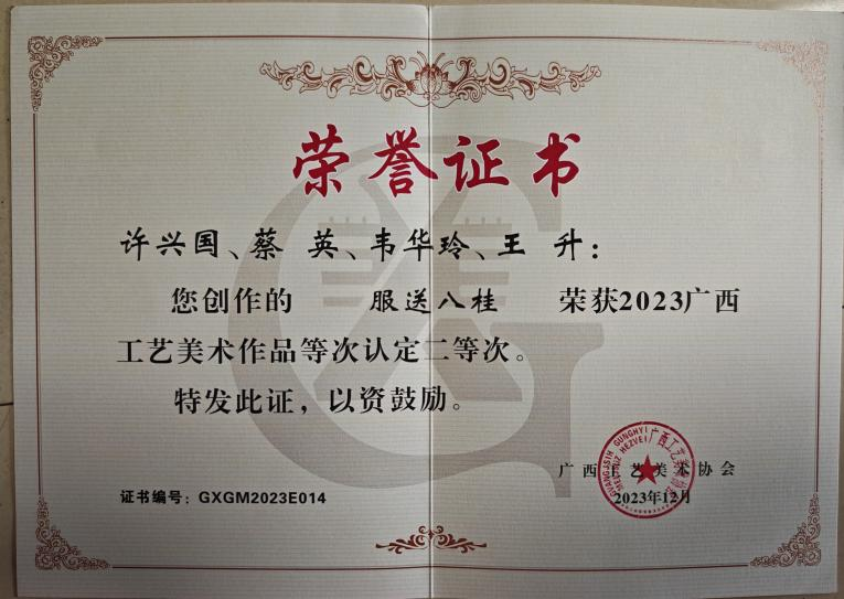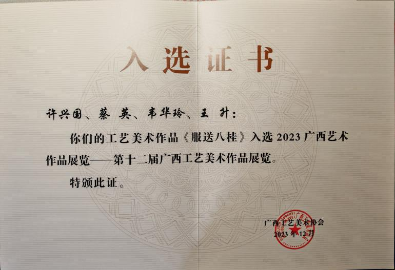 7、作品《服送八桂》发表《2023广西艺术作品展览—工艺美术作品》,2024.5