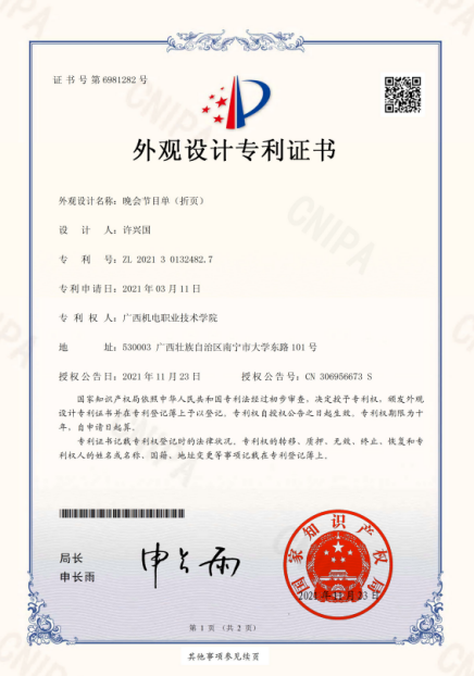 11、外观专利,(机电)晚会节目单(折页),2021.11