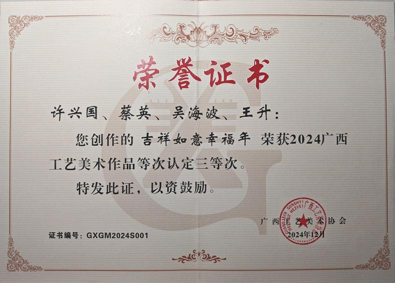 11、主创蜡染作品《吉祥如意幸福年》获2024广西工艺美术作品等次认定三等次