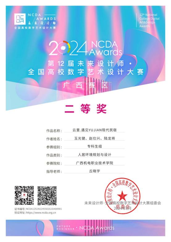 广西职业院校技能大赛高职组环境艺术设计赛项 二等奖1项。