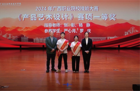 近年来,师生团队在各级赛事中屡获佳绩六十余项,先后荣获2025 年广西职业院校技能大赛《产品艺术设计》赛项金奖、2024 年全国行业职业技能竞赛玩具设计师赛项职工组一等奖等重要奖项,并在广西职业院校技能大赛《数字化产品设计与开发》等赛项中斩获二等奖等。列表中为近两年的主要获奖情况。
