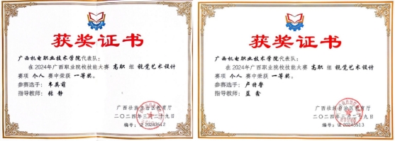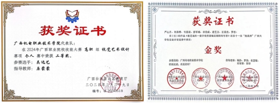 3.2024—2025年获广西职业院校技能大赛视觉艺术设计赛项一等奖2项、二等奖1项、银奖1项