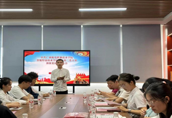 为进一步加强党员队伍建设,切实提高党员发展质量,保持我院党组织的生机与活力,6月19日下午14时,智能焊接技术学院学生第一、二党支部在笃行楼528室召开2024年上半年预备党员接收大会,讨论张淼等八名同志入党问题。会议由学生第一党支部书记王胜兰主持,智能焊接技术学院党委副书记文小满、党支部委员以及入党积极分子等出席活动。