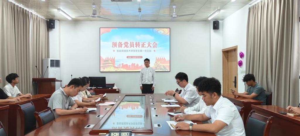 本次预备党员转正大会为智能焊接技术学院学生党支部注入了有生力量,全体党员共同接受了一次深刻的党性教育和思想洗礼。希望新转正的党员同志能够始终牢记入党誓词,不忘初心、牢记使命;坚持理论学习,筑牢思想根基;立足专业学习,练就过硬本领;密切联系群众,践行服务宗旨。期待各位同志在今后的学习生活中,以更高的标准严格要求自己,在思想引领、学业发展、志愿服务等方面切实发挥先锋模范作用,用实际行动诠释共产党员的责任与担当。