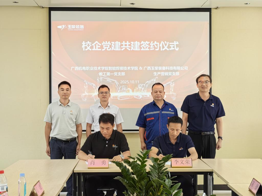 座谈期间,校企双方还举行了“党建共建签约仪式”。学院教工第一党支部分别与广西玉柴装备科技有限公司生产营销党支部、广西玉柴模具装备有限公司签订共建协议,明确将通过“联合主题党日”“党员技术先锋岗”“校企党建资源共享”等举措,推动党建工作与业务工作深度融合,以高质量党建引领校企合作高质量发展。