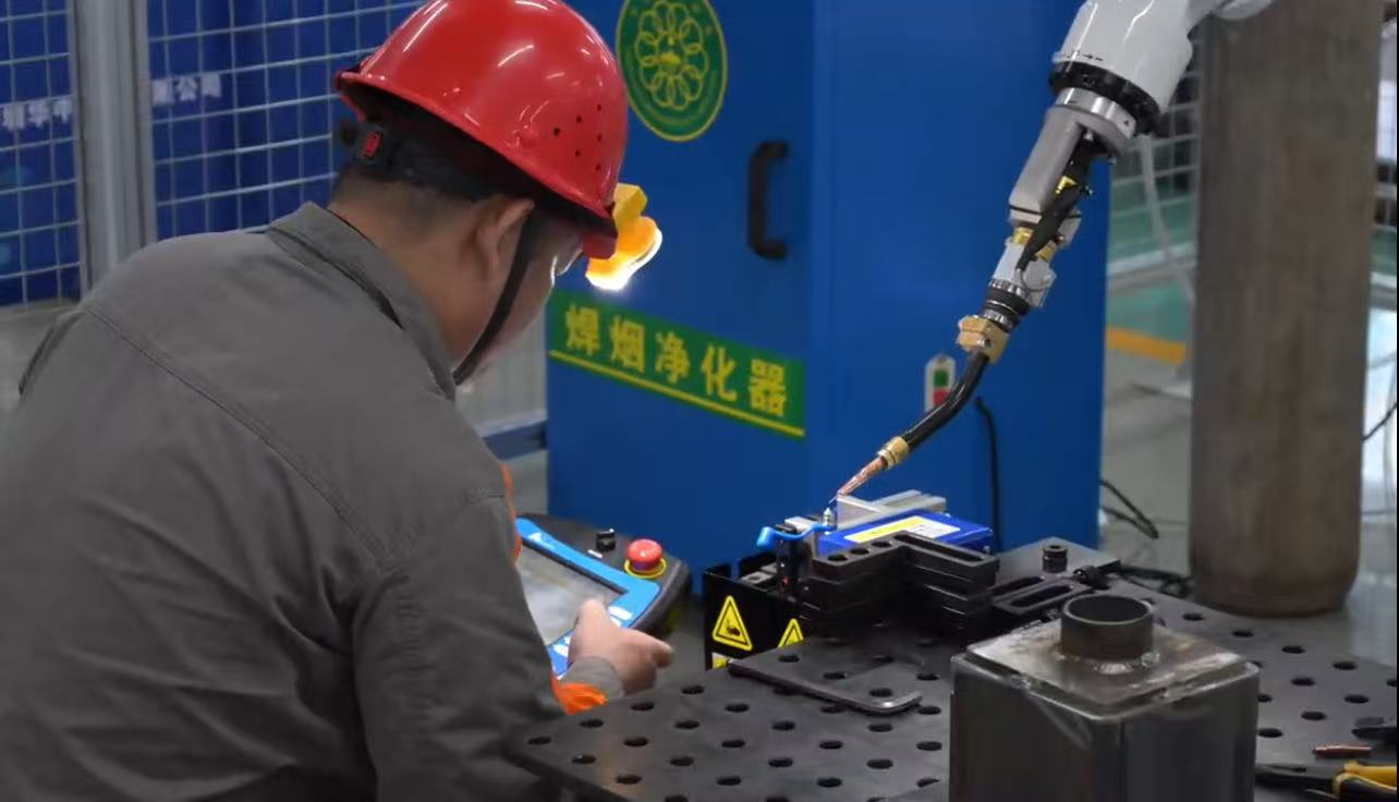 作为自治区级一类职业技能竞赛,本次赛事严格对标国家职业技能标准高级工要求,紧密结合智能制造发展趋势与企业生产实际,重点考核选手在机器人焊接技术领域的综合应用能力。竞赛采用双人团体赛形式,设置职工组(含教师)和学生组两个组别,通过“理论考试+实际操作”的双考核模式全面检验选手素养,其中理论成绩占20%,实操成绩占80%。理论考试涵盖焊接机器人安全知识、工作原理、焊接工艺、编程基础等核心内容;实际操作环节聚焦压力容器模型焊接任务,选手需在规定时间内完成试件装焊、手工MAG焊接、机器人TCP标定、故障排查、示教编程、数字孪生虚拟调试等全流程操作,既考验技术熟练度,也注重团队协作与职业素养。 竞赛现场,6个标准化工位配备华数HSR-JH605机器人、奥太Pulse MIG-350焊机等专业设备,完善的安全保障和应急处置机制确保了赛事有序进行。各参赛队伍奋勇争先、默契配合,在焊枪精准操作、程序精准编写、故障快速排查中展现出扎实的技能功底与精益求精的工匠精神,充分诠释了新时代技能人才的过硬本领。