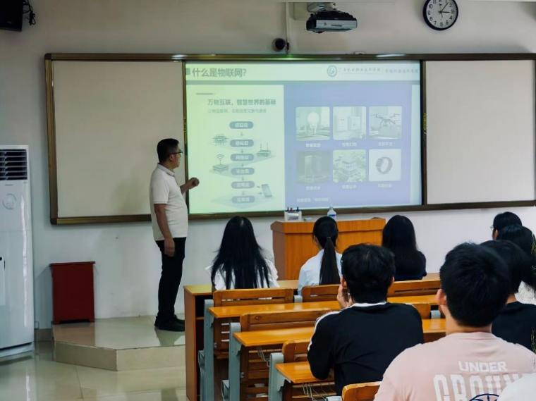 专业介绍环节,熊治文老师首先向新生说明:“物联网技术(视觉方向)专业是咱们学院新开设的专业,今天的介绍会就是要帮大家解开对新专业的疑问。”随后,围绕“什么是物联网”“什么是机器视觉”两大核心问题展开介绍,结合智能制造场景中的视觉检测、工业设备物联网技术应用等贴合学院以及工业生产环节中的实际案例,生动讲解专业核心内容,让新生明确新专业的定位和应用场景以及新专业“学什么”——既要掌握物联网信息交互、系统搭建等理论知识,又要重点学习机器视觉算法、检测设备操作等与行业需求紧密结合的关键技能。