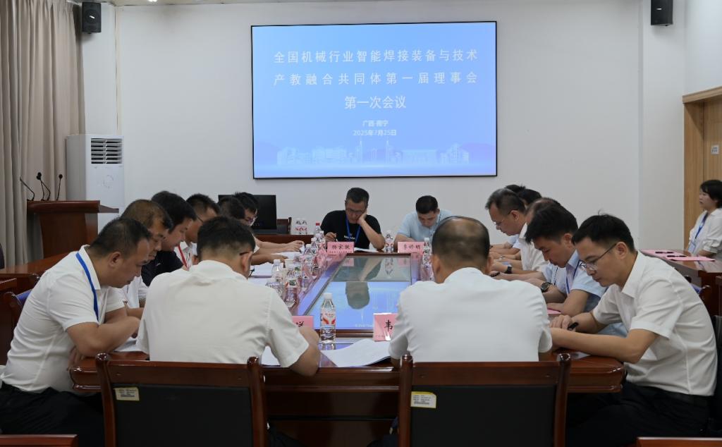 大会结束后,全国机械行业智能焊接装备与技术产教融合共同体第一届理事会第一次会议在智能焊接技术学院2-003会议室举行。院长李宁、副院长龙昌茂、副院长李玺、广西建工集团建筑机械制造有限责任公司副总经理陈策、北京工业大学院长助理张国凯等领导与嘉宾齐聚一堂,商议共同体章程与主要成员单位,并发布共同体工作计划。