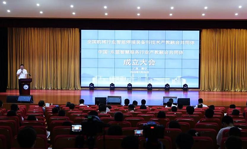 两大共同体分别聚焦先进制造业的智能焊接技术与东盟区域的智慧服务产业,旨在打通教育链、产业链与创新链的壁垒。共同体将立足广西区位优势,面向全国及东盟区域,建设示范性产教融合平台,持续赋能产业转型升级与国际合作。