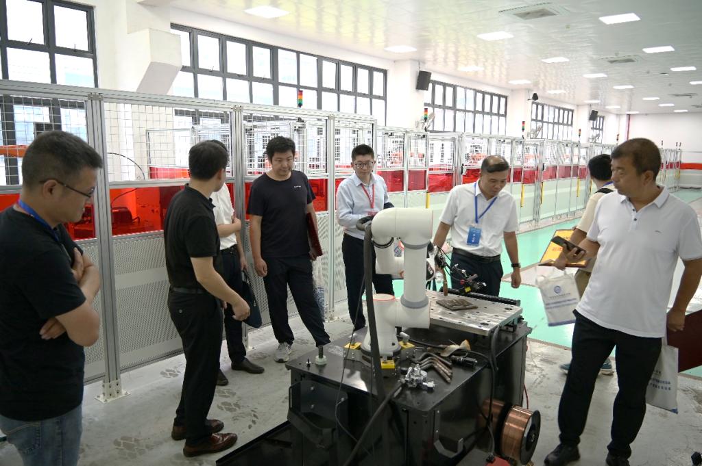 会后,共同体的代表们参观了智能焊接技术中心及学院一楼的实训场地,并进行了交流探讨。智能焊接技术专业带头人肖勇负责本次参观的讲解工作。