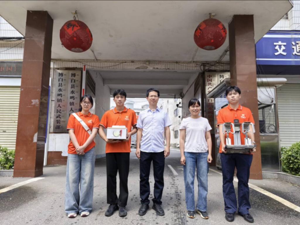 调研团队首站抵达水鸣镇政府中心。队长覃业硕就新一代助农柑果开皮机展开了细致入微的讲解与推广。他深入剖析了机器的设计理念、技术优势以及实际应用效果,让在场人员对产品有了更直观的认识。与当地政府官员、农业专家展开了深度交流。交流聚焦于如何借助技术创新提升农产品加工效率,尤其针对陈皮柑开皮这一关键环节,各方积极探讨可行方案。